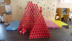 🎶ダンス🎵 こんにちは ぽんてカーサの岩田です。 本日はダンスの日でした。 定番のBling-Bang-Bang-Bornは、踊りはもちろん、 歌いながら楽しんでいました。皆のお気に入りです! カップタワーでも遊びました。 自分の身長よりも高く積みました! 作成者が後ろに隠れて見えないほどです w また、皆で色んな事に挑戦しましょうね。