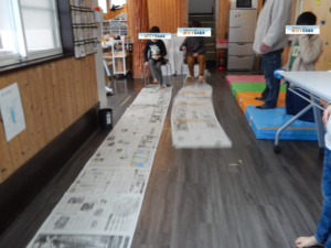 だんだん慣れてきました。【放課後デイサービス つくば市 ぽんてCASA 見学大歓迎!!】 ぽんてCASA堀です。 みんな花粉症で苦しんでいます。 対策バッチリなんですが、目がかゆくて仕方ないみたいです。 今日は、新聞紙ゲームです。 靴下を脱いで気合い入っています。 最近では蹴る力が強すぎて新聞紙が切れてしまいます。 みんな優勝したくてイスを変える人もいました。 足の長さ、足の大きさ全然違います。 良い方法考えて金メダルを取りに頑張っています。