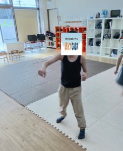との事前情報もあり、安全面から室内で体を動かす